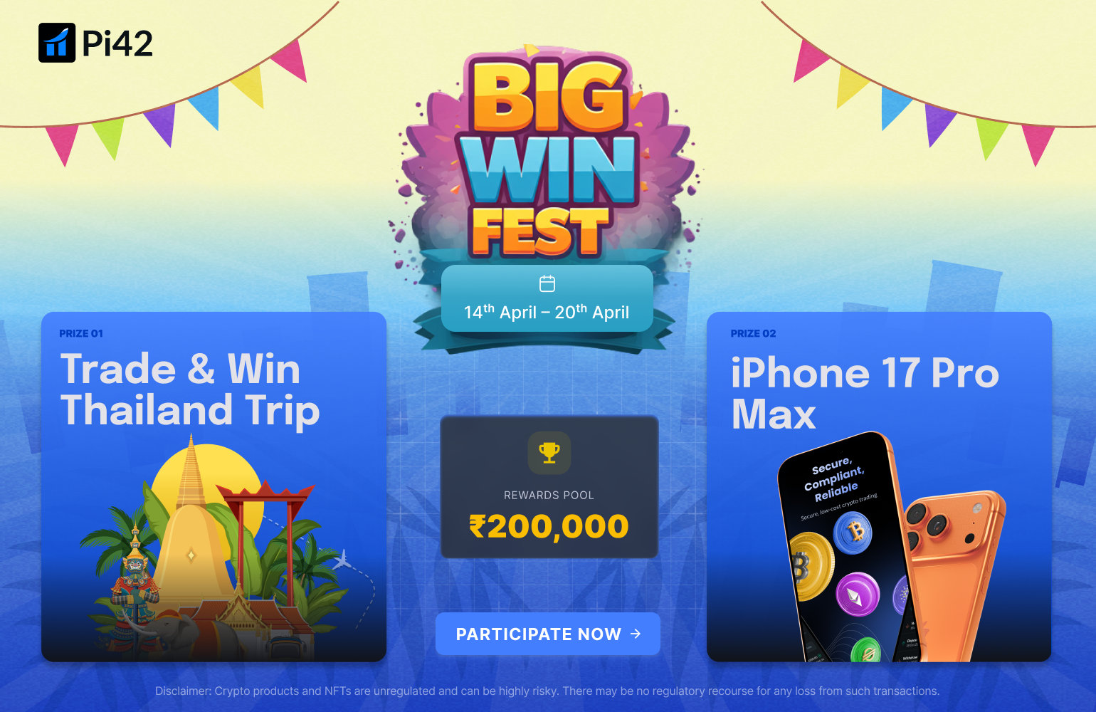 Massive Crypto Rewards Pool: With over ₹2 lakhs in prizes, Big Win Fest offers some of the most generous crypto trading rewards in the industry. Every trade you make brings you closer to life-changing prizes.